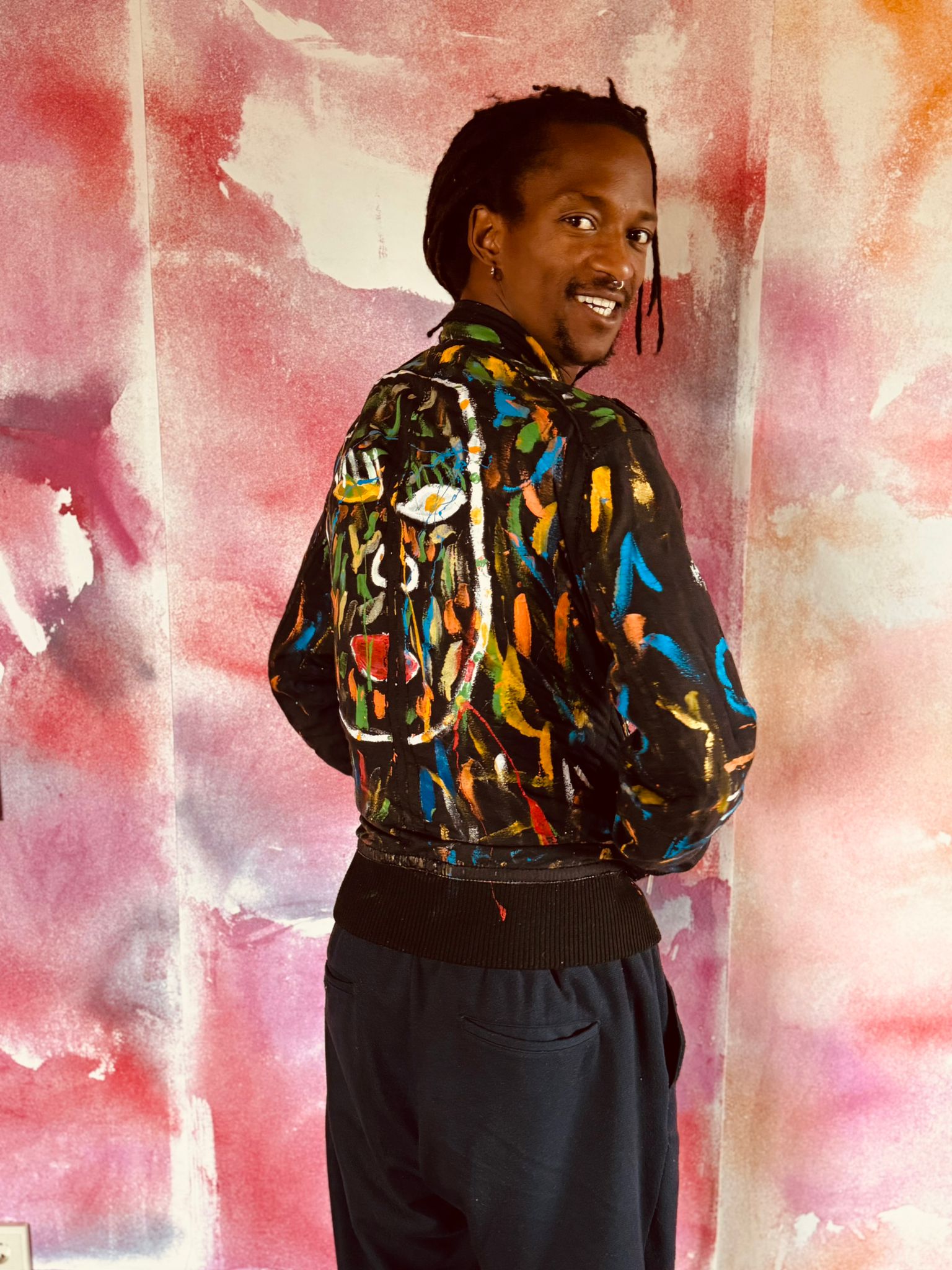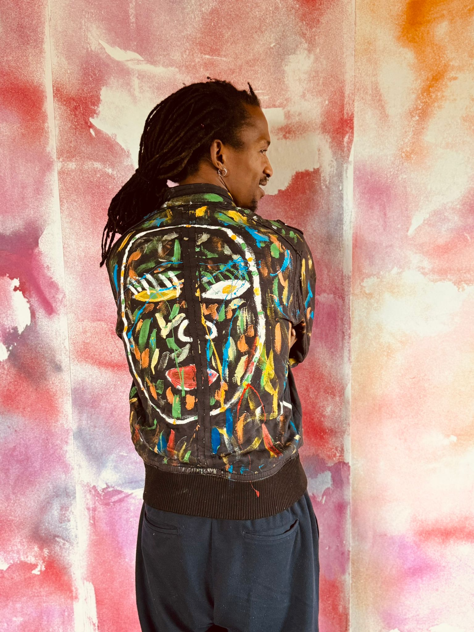 Jacke aus Rinderleder Bemalt mit Ölfarbe Aus der Kollektion „Chic Rebel“.