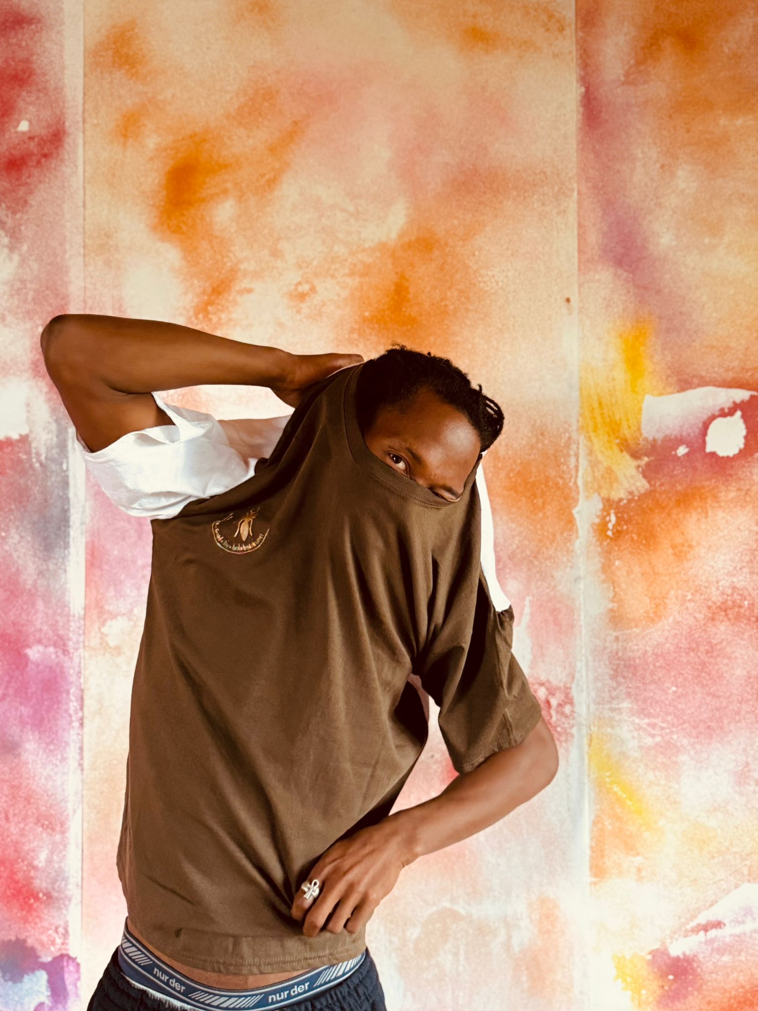 T-Shirt im Ameisengold-Styling. Vorne braun, hinten weiß. Aus der Kollektion „Chic Rebel“.