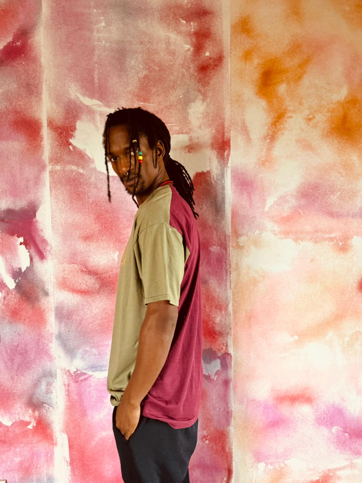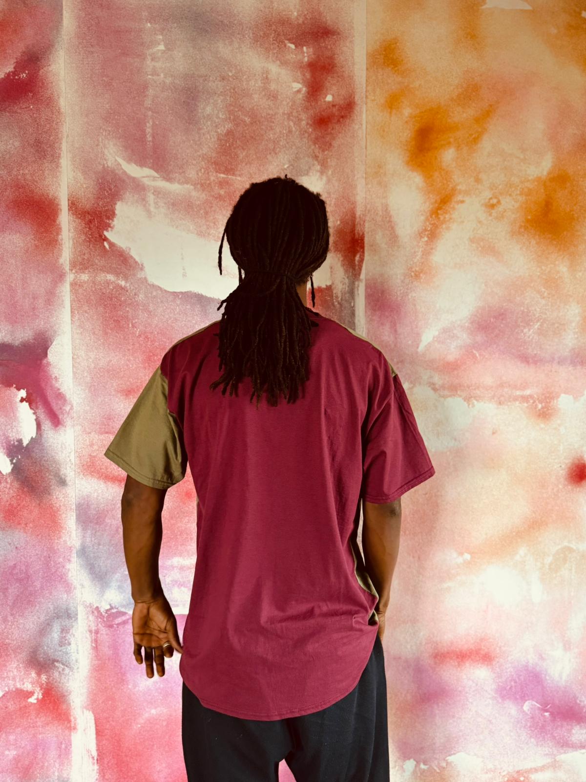 T-Shirt im Ameisengold-Styling. Vorne Grau, hinten weinrot. Aus der Kollektion „Chic Rebel“.
