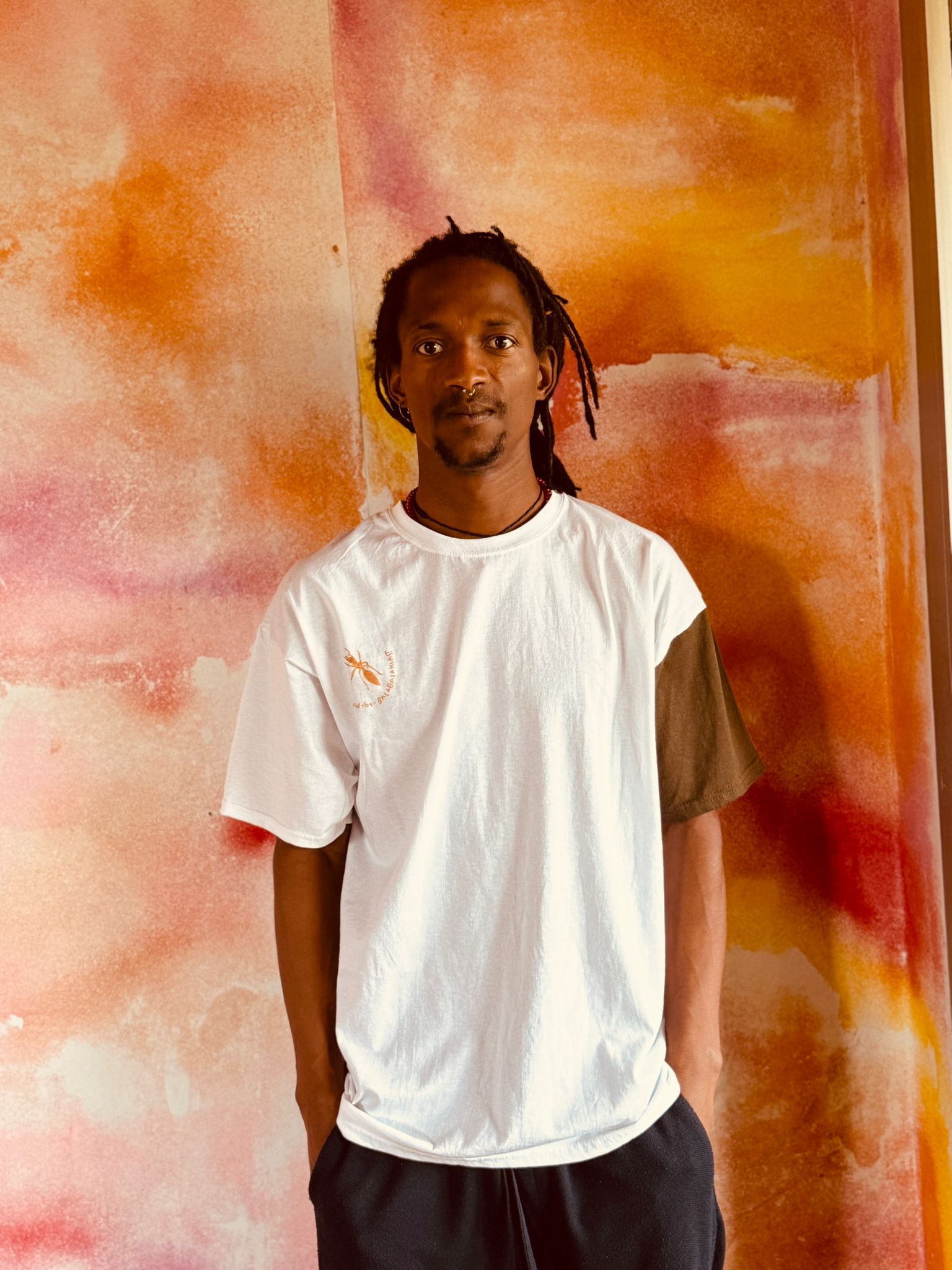 T-Shirt im Ameisengold-Styling. Vorne weiß, hinten braun. Aus der Kollektion „Chic Rebel“.
